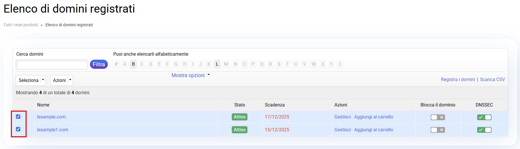 Operazioni multiple: rinnovare più di un dominio alla volta