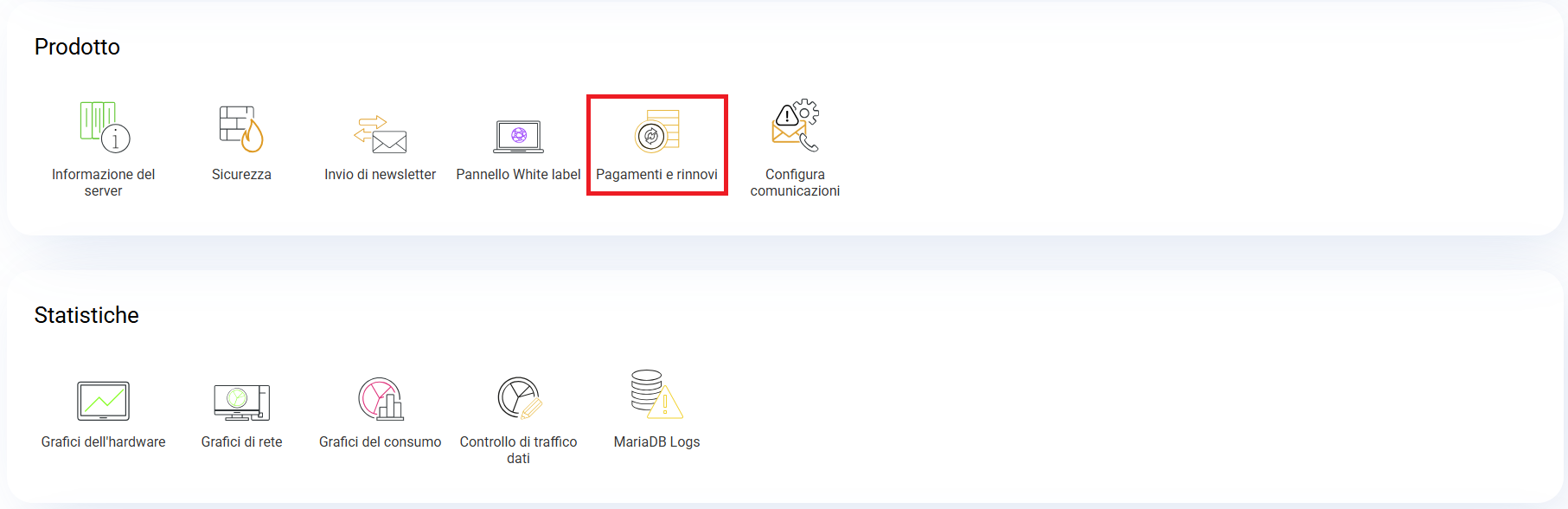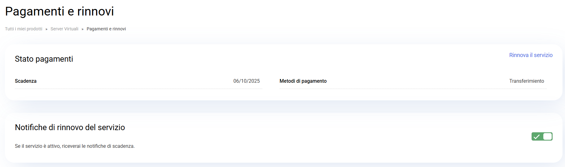 Pagamenti e rinnovi server virtuali gestiti virtuali