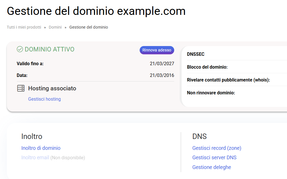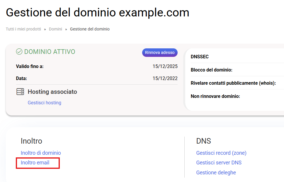 Per abilitare i reindirizzamenti di posta a livello di dominio, è fondamentale che il record MX del dominio sia configurato correttamente.