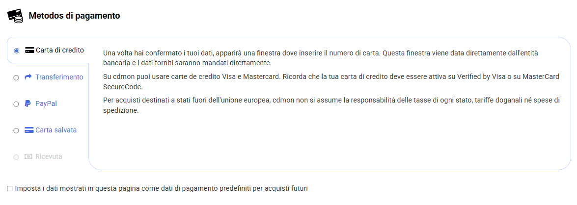 - Se scegli l’addebito diretto, in base alla periodicità selezionata, cdmon emetterà un addebito bancario per l’importo corrispondente e il rinnovo verrà effettuato automaticamente.