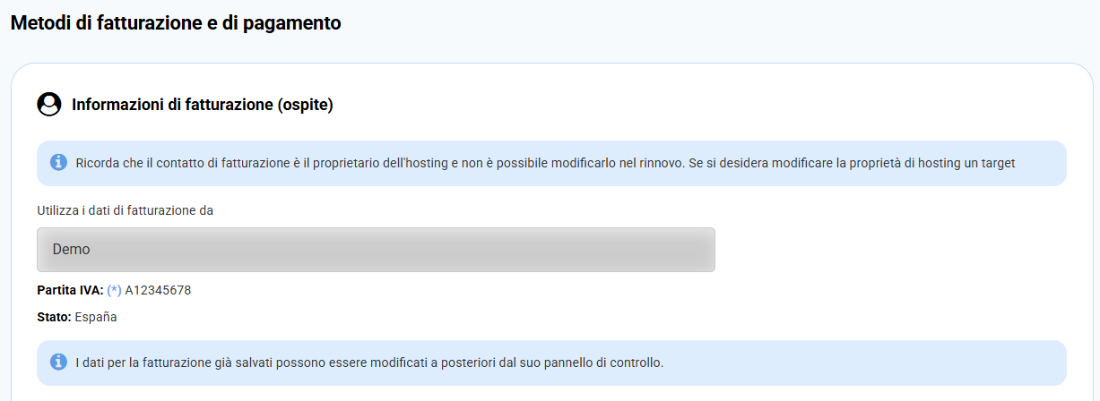 Nella stessa schermata potrai verificare e modificare i dati di fatturazione. Se tutto è corretto, clicca su Passaggio successivo.